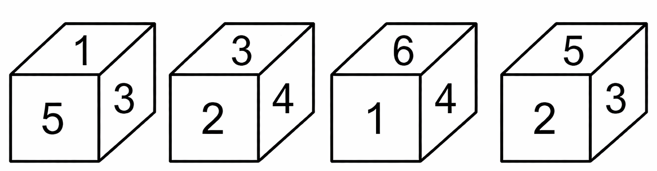 Four different positions of the same dice are shown, the six faces of which are numbered from 1 to 6. Select the number that will be on the face opposite to the one having '1'. SSC CHSL 2022-10.03.2023-1