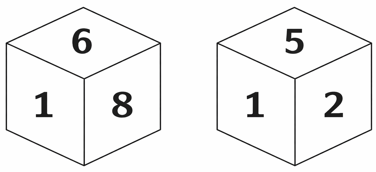Six numbers 1, 2, 5, 6, 8 and 9 are written on different faces of a dice. Two positions of this dice are shown in the figure. Which is the number on the face opposite to the face containing 8? SSC CHSL 2024-03.07.2024-1