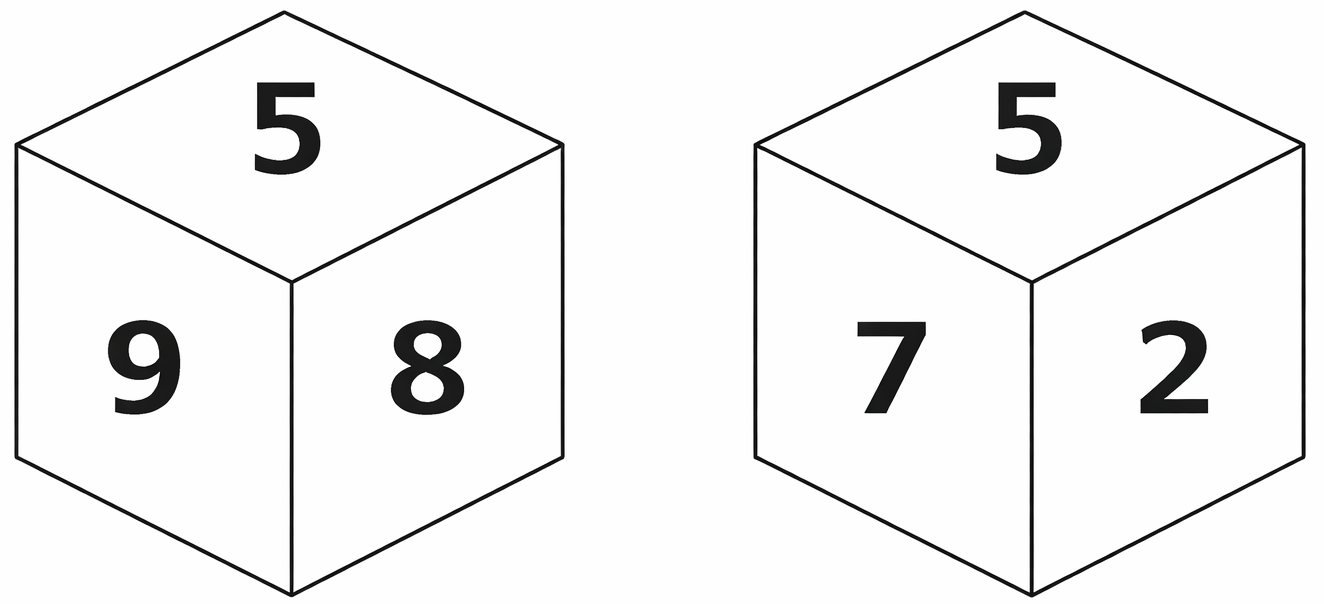 Six numbers 2, 3, 5, 7, 8 and 9 are written on different faces of a dice. Two positions of this dice are shown in the figure. Which is the number on the face opposite to the face containing 5? SSC CHSL 2024-03.07.2024-2