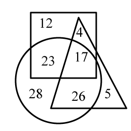 In the Venn Diagram given below, if 'Square' represents "Doctors’, ‘Triangle’ represents 'Tennis Players’ and ‘Rectangle’ represents ‘Indians', Numbers represent the individuals in that category. How many doctors are Indians but NOT tennis players? SSC CHSL 2021-19.04.2021-1