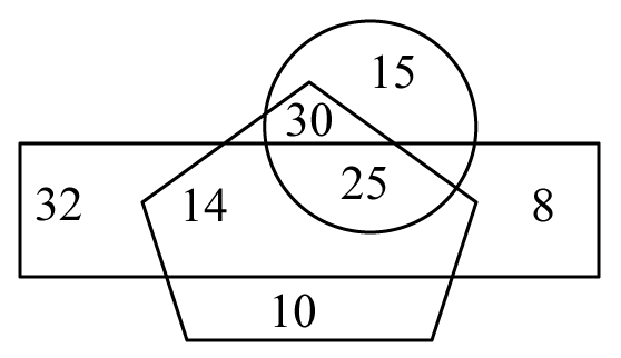 In the following Venn diagram, the pentagon stands for 'Librarians', the rectangle stands for 'Income Tax Payers', and the circle stands for 'Post-graduates'. The given numbers represent the number of persons in that particular category. How many librarians are there who are also post-graduates? SSC CHSL 2021-06.08.2021-3