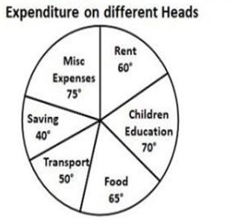 Monthly expenditure of a fmaily on different heads is shown in the following pie chart.