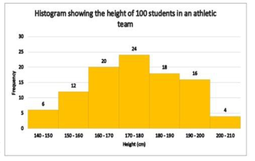Study the given histogram that shows the height (in cm) of 100 students in an athletic team and answer the question that follows.