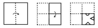 The sequence of folding a piece of paper and the manner in which the folded paper has been cut is shown in the following figure. How would this paper look when unfolded?