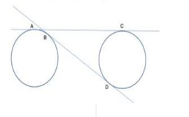 Two common tangents AC and BD touch two equal circles each of radius 7 cm, at points A, C, B and D, respectively, as shown in the figure. If the length of BD is 48 cm, what is the length of AC?