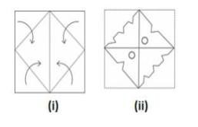 The sequence of folding a piece of paper(Figure 1) and the manner in which the folded paper has been cut(Figure 2) is shown in the following figure. Select the option that would most closely resemble the unfolded form of figure (2).