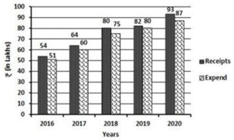 The following bar graph shows receipts and expenditure of a business firm over 5 years. Gain = Receipts - Expenditure.