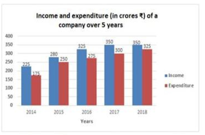 The given bar graph shows the income and expense (in crores) of a company over 5 years, from 2014 to 2018.