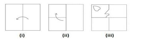 The sequence of folding a piece of paper(Figure 1 and 2) and the manner in which the folded paper has been cut(Figure 3) is shown in the following figure. Select the option that would most closely resemble the unfolded form of figure (3).