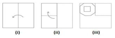 The sequence of folding a piece of paper(Figure 1 and 2) and the manner in which the folded paper has been cut(Figure 3) is shown in the following figure. Select the option that would most closely resemble the unfolded form of figure (3).