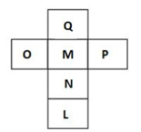 Two orientations of a dice are shown. This dice can be obtained by folding which of the option figures along the lines?