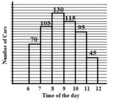 The number of cars passing the road near a colony from 6am to 12 noon has been shown in the following histogram.