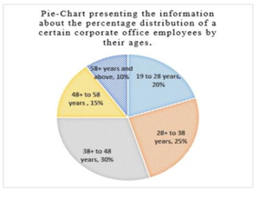The following chart shows the distribution % of a certain corporate office employee in various age groups.