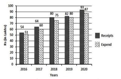 The following bar graph shows receipts and expenditure of a business firm over 5 years.