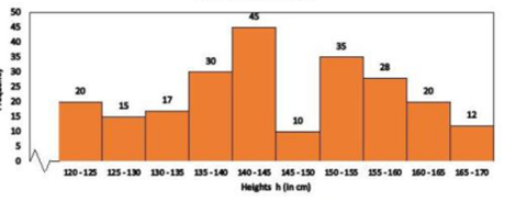 The given histogram shows the height of 232 students of an athletic club and their numbers.