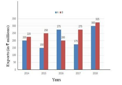 The bar graph shows the exports of cars of type A and B ( in millions) from 2014 to 2018.