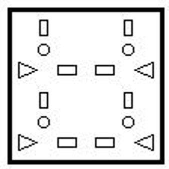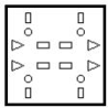 The sequence of folding a piece of paper and the manner in which the folded paper has been cut is shown in the following figure. How would this paper look when unfolded?
