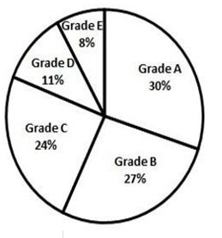 Performance of 1800 students in grades has been shown in the following pie chart.