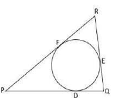In the given figure, a circle is inscribed in △PQR, such that it touches the sides PQ, QR and RP at points D,E,F repectively. If the lenghts of the sides PQ=15cm, QR=11cm and RP=13cm, find the length of PD.