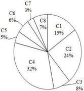 The pie chart given below shows the population of 8 cities in a year. Total population of all the 8 cities is 30,000. Population in a particular city is shown as a percent of total population in all these 8 cities