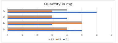 The chart shows the quantity of substances (P1, P2, P3) in different drugs (A, B, C, D).