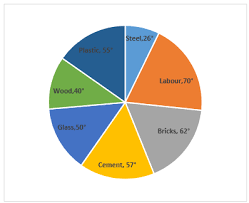 The following pie chart represents the total expenditure of Rs. 12,00,000 on several items in consturction of a house in a village.