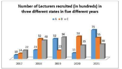 The number of lecturers recruited in state A in the year 2017 was what percentage of the number of lecturers recruited in state B in the year 2019? (Correct to 2 decimal places)