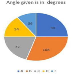 Five different companies A,B,C,D,E make robotic toys. The total number of robotics toys produced by these five companies is 8,00,000. The Cost of production of each robotic toy is ₹ 5000. The distribution of the total production is given in the following pie chart