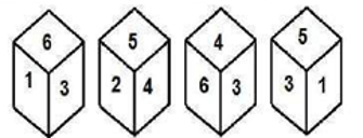 Four different positions of the same dice are shown, the six faces of which are numbered 1 to 6. Select the number that will be on the face opposite to the one showing 4