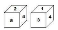Two positions of the same cuvical block are shown. When '6' is at the top, which number will be at the bottom?