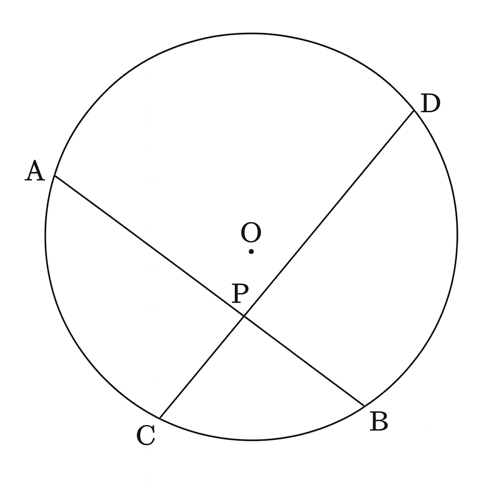 In the figure, O is the centre of the circle. Its two chords AB and CD intersect each other at the point P within the circle. If AB = 20 cm, PB = 12 cm and CP = 8 cm, then find the measure of PD.