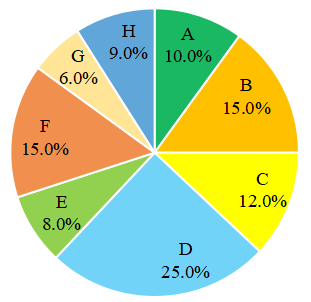 The following pie chart shows the number of workers of different categories A,B,C,D,E,F,G,H in a factory in 1995