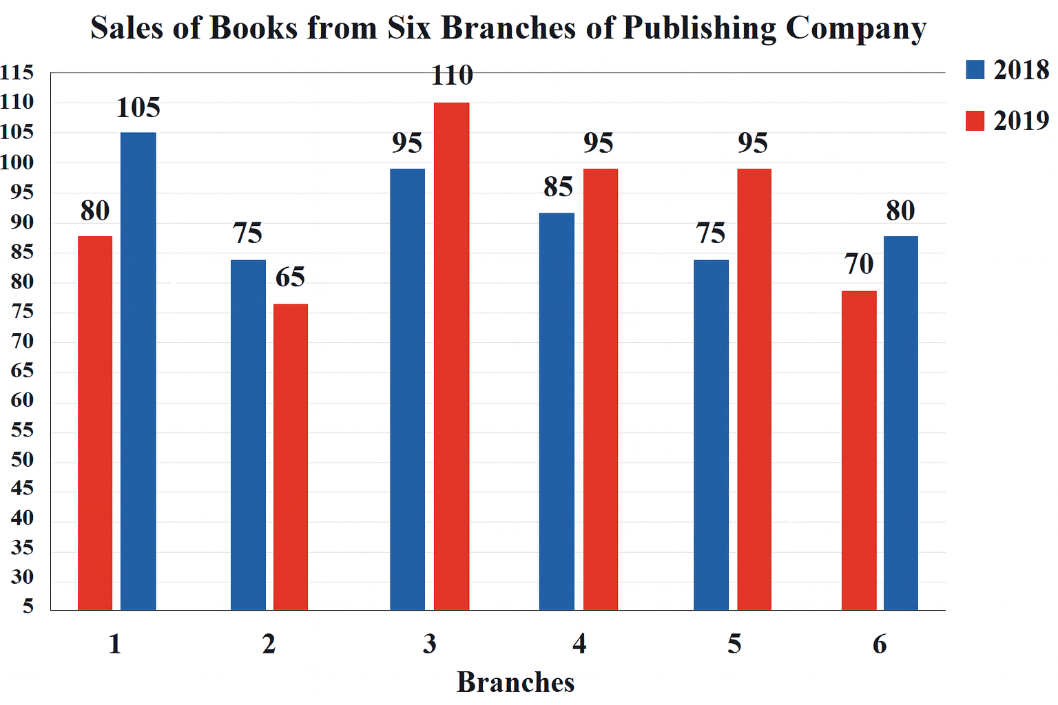 The following graph shows sale of books (in 1000s) from 6 branches of a publishing company during 2 consequetive years 2018 and 2019.