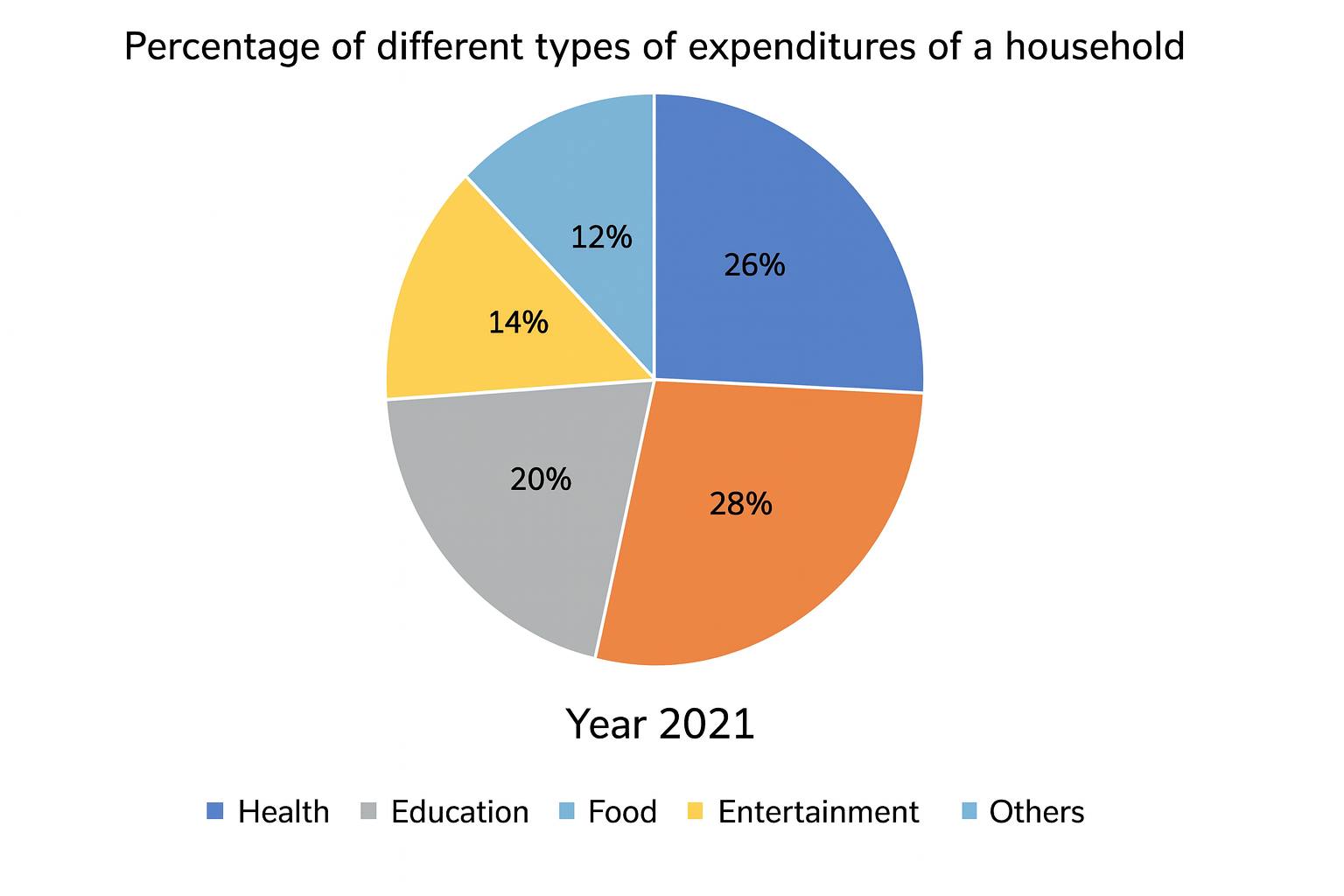 The difference in the expenditure on health and entertainment is what percentage of the expenditure on food?