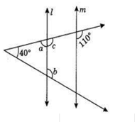 In the following figure, if l‖m, then find the measures of angles marked by a and b.