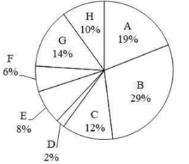 What is the ratio of total central angle formed by sector C, D and F to the total central angle formed by sector A, G and H?