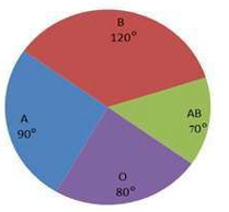 The following pie-chart shows the data regarding the donors of A, B, O and AB blood groups.