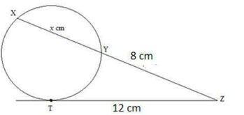 In the figure, XYZ is a secant and ZT is a tangent to the circle at T. If TZ = 12 cm and YZ = 8 cm, then find the length of XY.