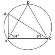 In the given figure, ∠ABC = 81° and ∠ACB = 9º. What is the value of ∠BDC?