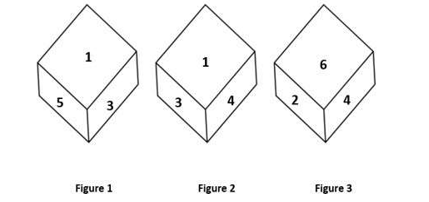 The different positions of the same dice are shown. Find the number on the face opposite the face showing 4