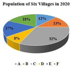 Study the given pie chart and answer the questions. The population of village D in 2020 was 10,500. What was the population of village A in 2020? Total population of these 6 villages is 100%