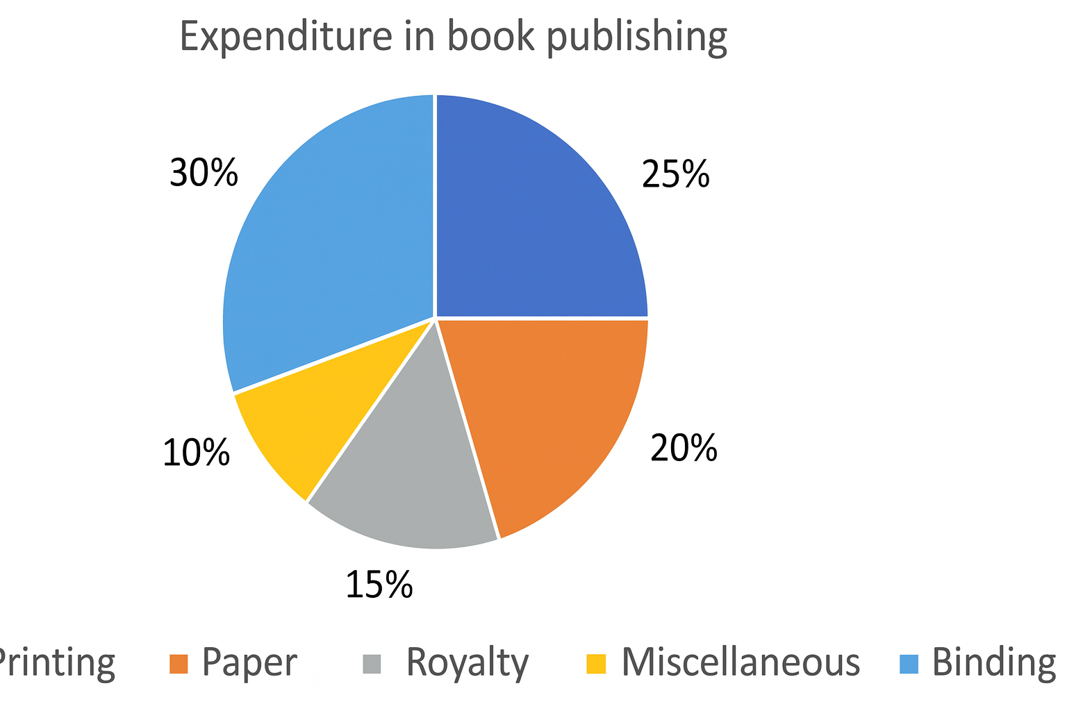 The pie-chart shows the expenditure incurred in the preparation of a book by a publisher, under various heads.