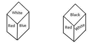 Two different positions of the same dice have different colours- White, red, blue, yellow, green and black - written on it. Identify the colour on the face opposite the face showing 'Blue'
