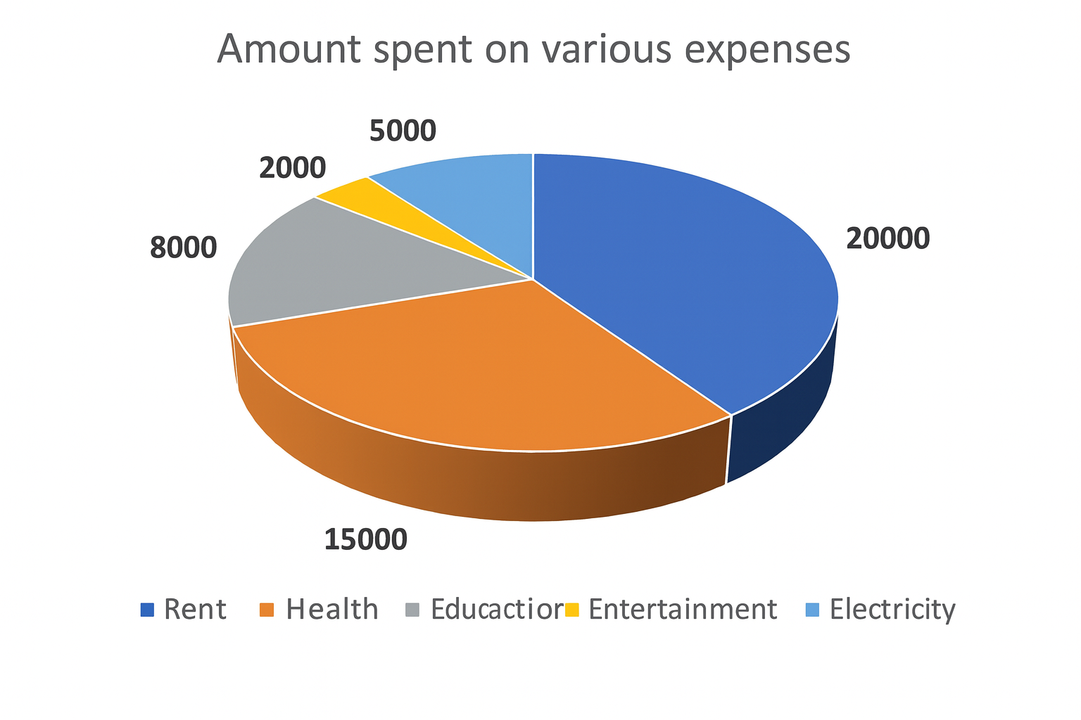 What is the central angle corresponding to the sector indicating the expenses incurred on health?