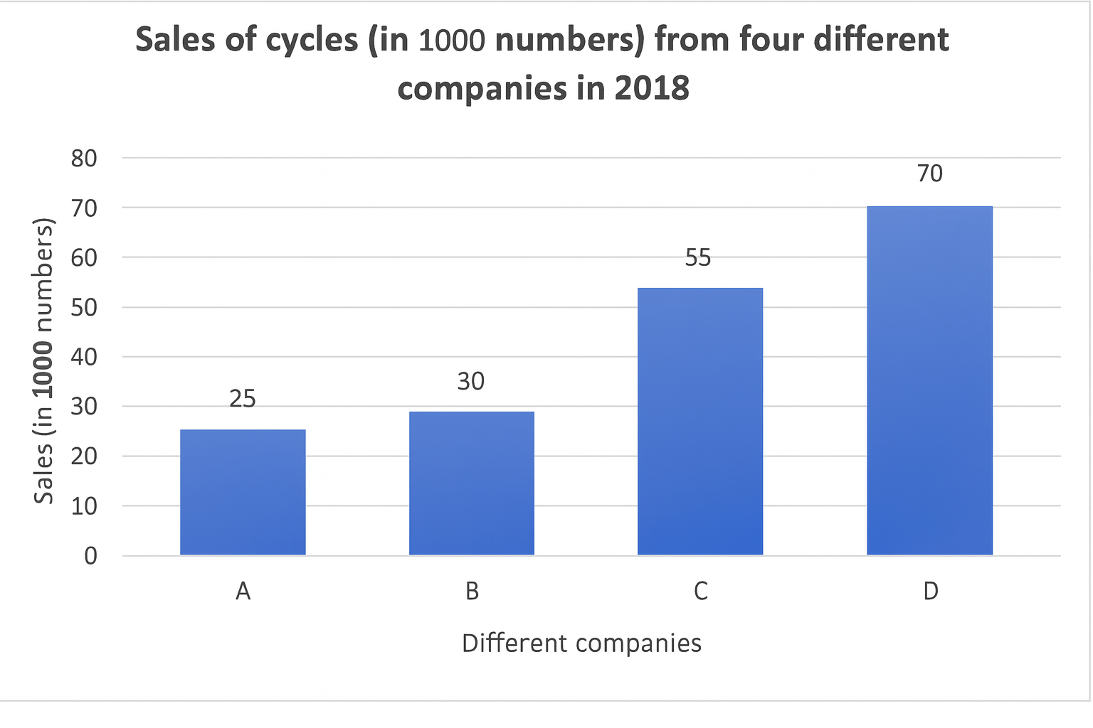 The bar graph shows the sales of cycles (in 1000s) from 4 different companies during 2018.