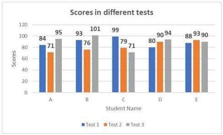 The following figure shows the scores of students in three tests organised by a coaching institution. Who scored the best on average?