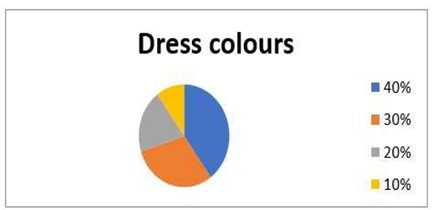 The following pie chart shows the different coloure dresses worn by 60 students in a college party. Study the pic chart and answer the question that follows.