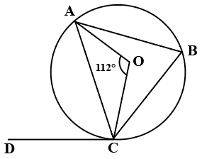 In the shown figure, BC is a chord and CD is a tangent through the point C. If ∠AOC = 112°, then find ∠ACD.