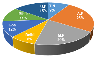 Data regarding population of different states in the year 2015 is shown in the pie-chart and tab.