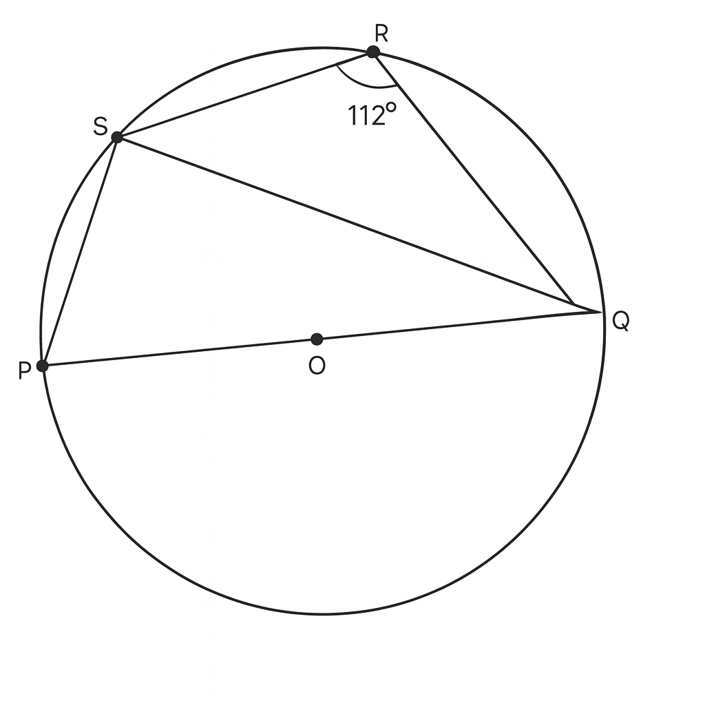 In the given figure, PQ is a chord passing through the centre 'O' of the circle. Calculate <PQS.